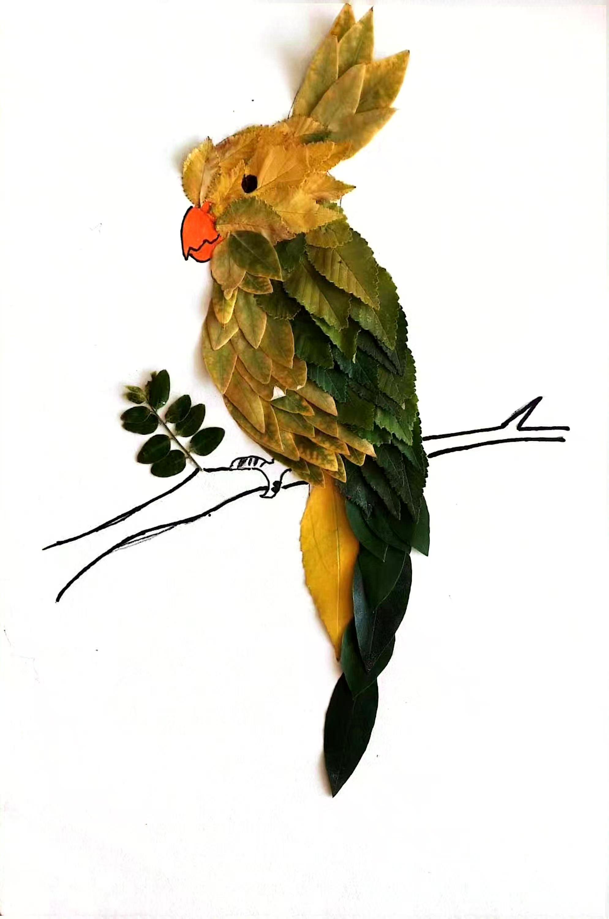 樹葉畫作品:春來