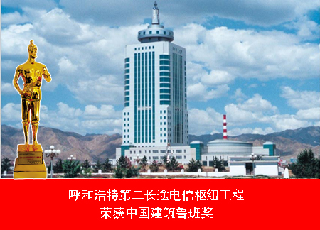 呼和浩特第二長途電信樞紐工程,是國家重點通訊基礎(chǔ)設(shè)備建設(shè)項目,內(nèi)蒙古自治區(qū)成立50周年的獻禮項目,獲得中國建筑工程“魯班獎”。