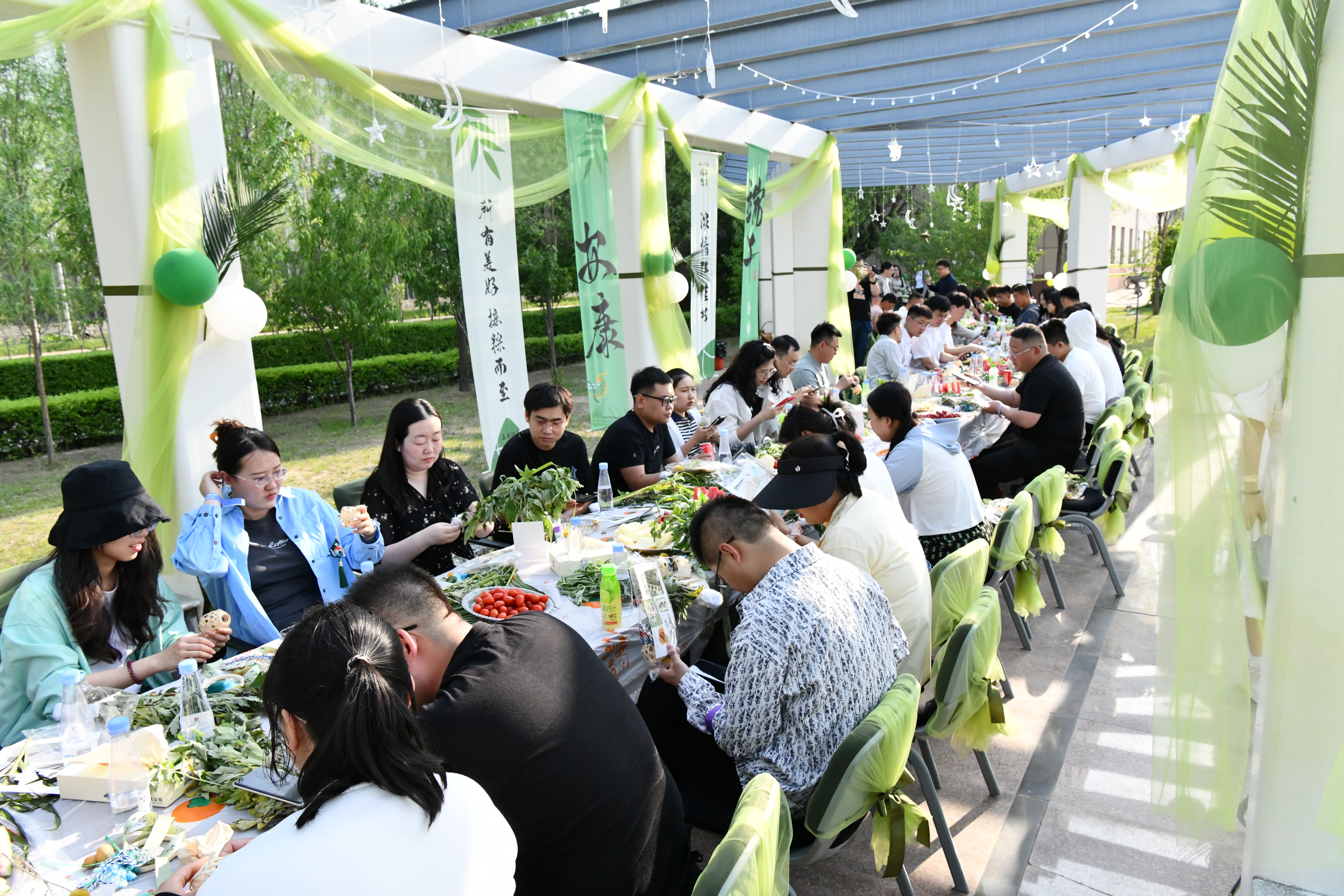 交友聯(lián)誼活動在中國二冶鋼構(gòu)分公司院內(nèi)舉行,現(xiàn)場以端午佳節(jié)為主題進(jìn)行布置,為青年職工提供輕松愉悅的交友氛圍。在主持人的引導(dǎo)下,隨機(jī)組隊的8組青年完成破冰,各自介紹了代表自己性格和興趣愛好的關(guān)鍵詞。隨后,青年們共同參與了“射五毒”“釣粽子”“艾草花束門掛DIY”等充滿端午元素的趣味游戲,在享受游戲樂趣的同時彼此增進(jìn)了解,進(jìn)一步拉近彼此的距離。游戲結(jié)束后參與聯(lián)誼活動的各單位領(lǐng)導(dǎo)為活動中取得前三名的小組頒發(fā)游戲獎品。