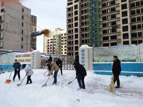接到指令后,大家紛紛拿起清掃工具,有的揮舞掃帚、有的掄起鐵揪,爭先恐后對分管片區開始清掃,寂靜的現場頓時熱鬧起來。經過大家兩個多小時的清理,項目部院內的積雪全部清掃干凈,施工現場周邊道路上也掃出一條干凈的小道,為周邊群眾出行提供了便利。這次積雪清掃,不僅體現了中國二冶良好的企業形象,也得到了周圍群眾的一致好評。