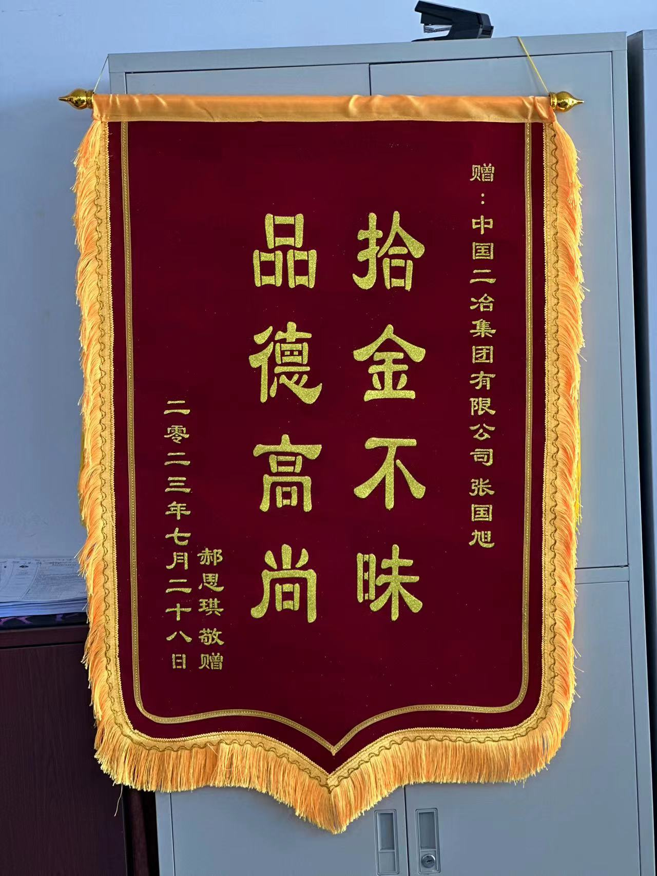 7月28日,中國二冶收到一份“意外”的表揚信和一面錦旗。信中用樸實的言語對中國二冶新入職大學生張國旭拾金不昧的精神表示了贊揚與感謝。