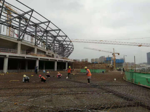 目前,項目配套用房B、C區(qū)已經(jīng)全部封頂,B區(qū)二次結(jié)構(gòu)完成90%,C區(qū)二次結(jié)構(gòu)完成70%。配套用房D1-4區(qū)主體完工,D5區(qū)屋面層鋼筋完成30%,D6區(qū)四層鋼筋綁扎完成70%,D7區(qū)屋面層支模架完成90%,D8區(qū)屋面層鋼筋完成5%,D9區(qū)屋面鋼筋完成10%,其中D1-6區(qū)二次結(jié)構(gòu)共完成70%,抹灰工程共完成10%。全民健身館J1-J6區(qū)土建混凝土量僅剩余150立方即可全面交予鋼結(jié)構(gòu)工程,鋼結(jié)構(gòu)工程現(xiàn)已完成80%,全民健身館二次結(jié)構(gòu)完成70%。