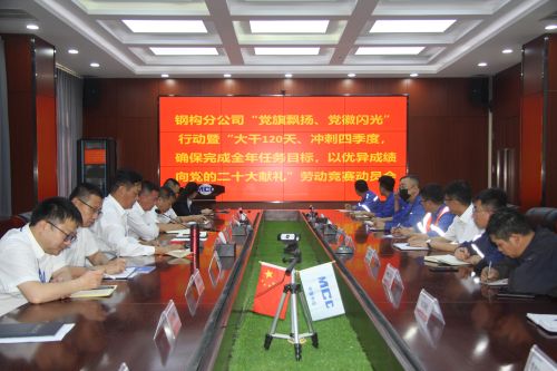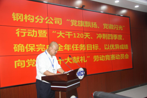 9月15日,鋼構分公司黨委召開“黨旗飄揚、黨徽閃光”行動暨“大干120天、沖刺四季度,確保完成全年任務目標以優異成績向黨的二十大獻禮”勞動競賽動員會。鋼構分公司黨委書記、總經理王志義發表講話,分公司紀委書記、副總經理田廣林主持會議。