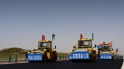 10月的河西走廊,已經出現了寒意,冷風環繞著項目部不停的吹,項目部的員工已經換上了厚衣服,而在酒嘉項目的施工現場,壓路機、攤鋪機的轟鳴聲震耳欲聾,重型卡車來回穿梭,多個作業面、幾十輛工程機械緊張作業,到處是一派熱火朝天、大干快干的生動場面。